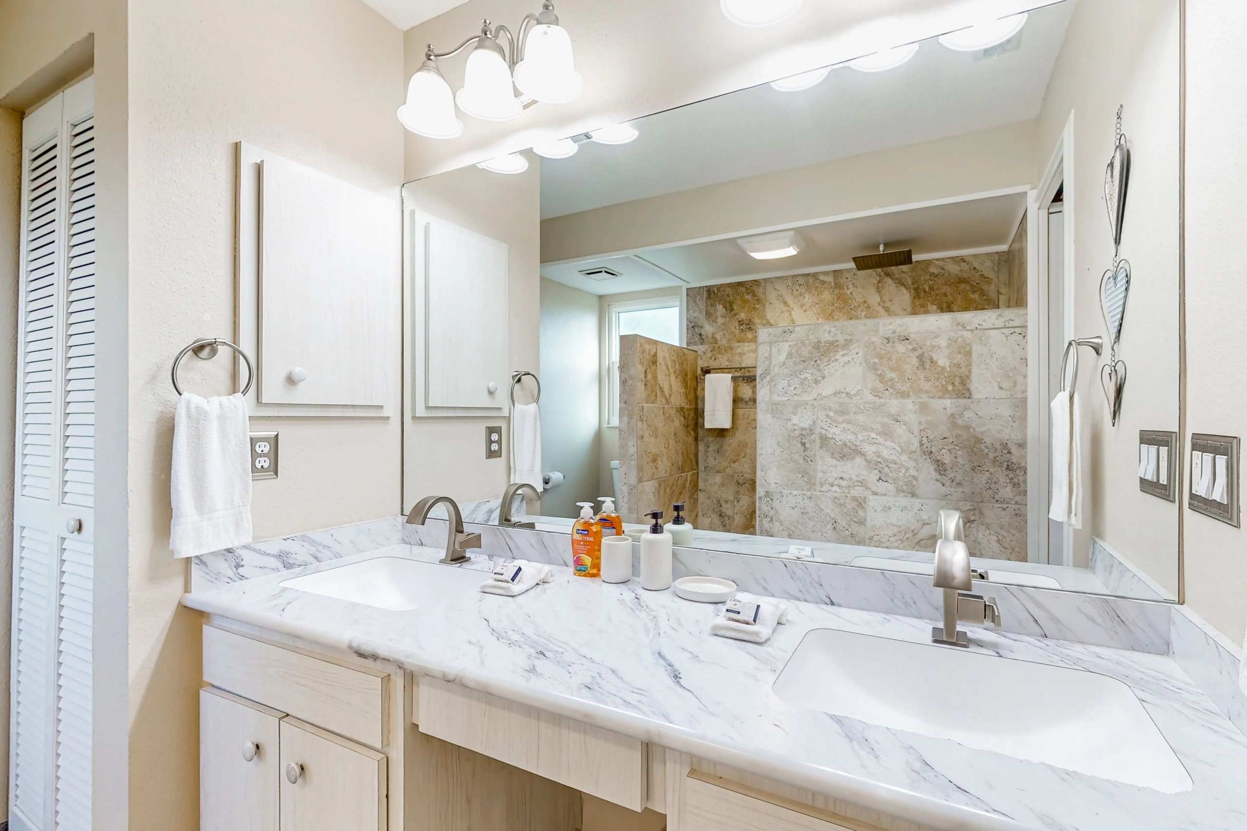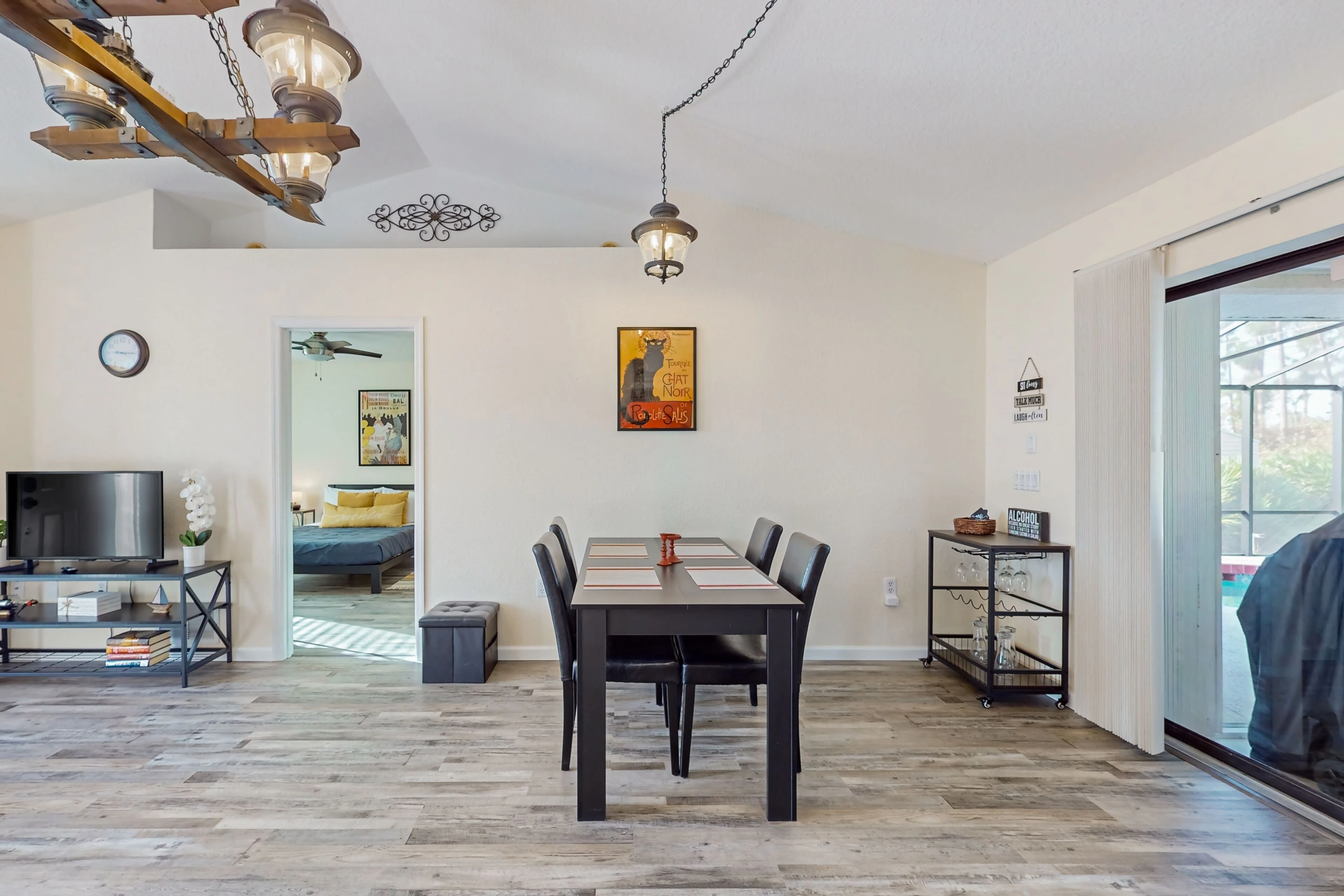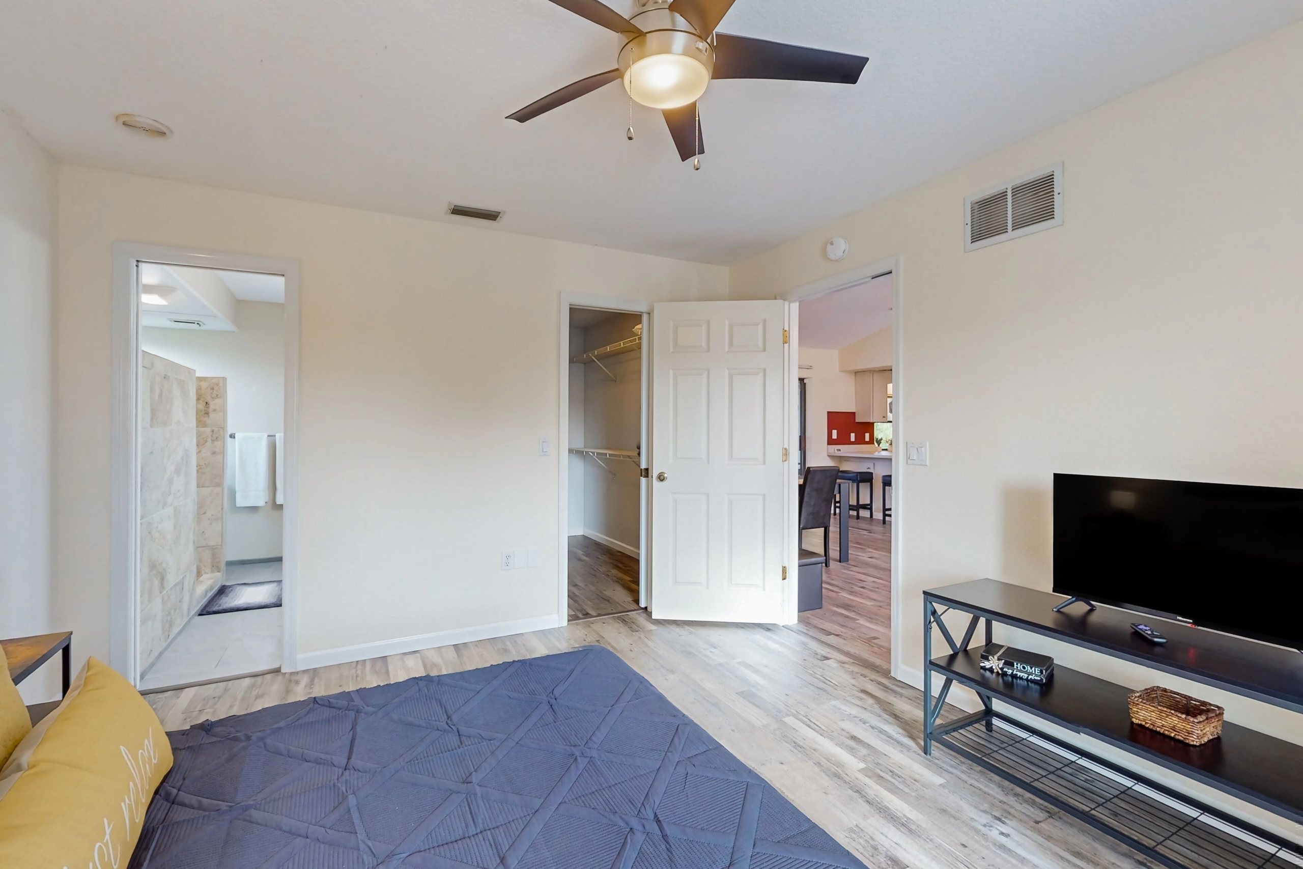 The interior of the home is just as inviting, with modern amenities such as central AC, internet, and a fully equipped kitchen for all your cooking needs. Relax in the comfortable living room, enjoy meals in the dining area, or step outside to the patio for al fresco dining with a gas grill for BBQ nights. The spacious layout includes multiple bedrooms with cozy beds, ensuring a restful night’s sleep for everyone.